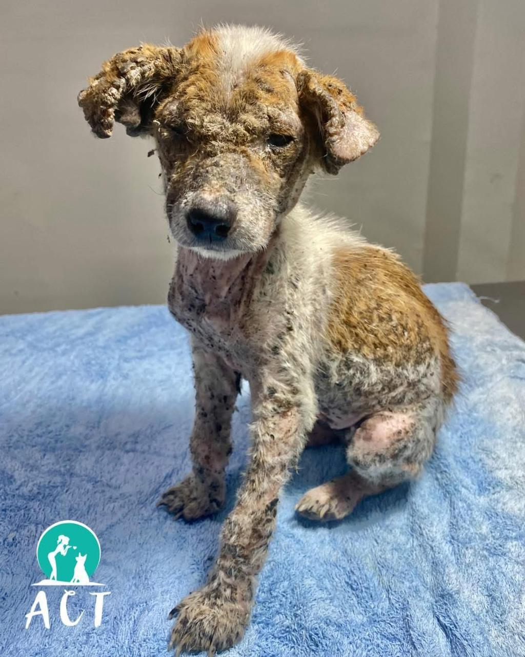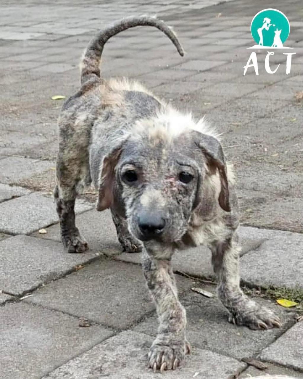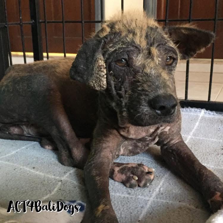 Dumped on the street as a pup, she was unwanted, and thrown out with a severe variety of multiple skin conditions, making her lose her fur, and making her skin painful and itchy. We later found out she had blood parasite which can be so dangerous for little pups. We got her just in time, and she now has a loving family so she'll get to grow up never knowing of pain or hunger again!